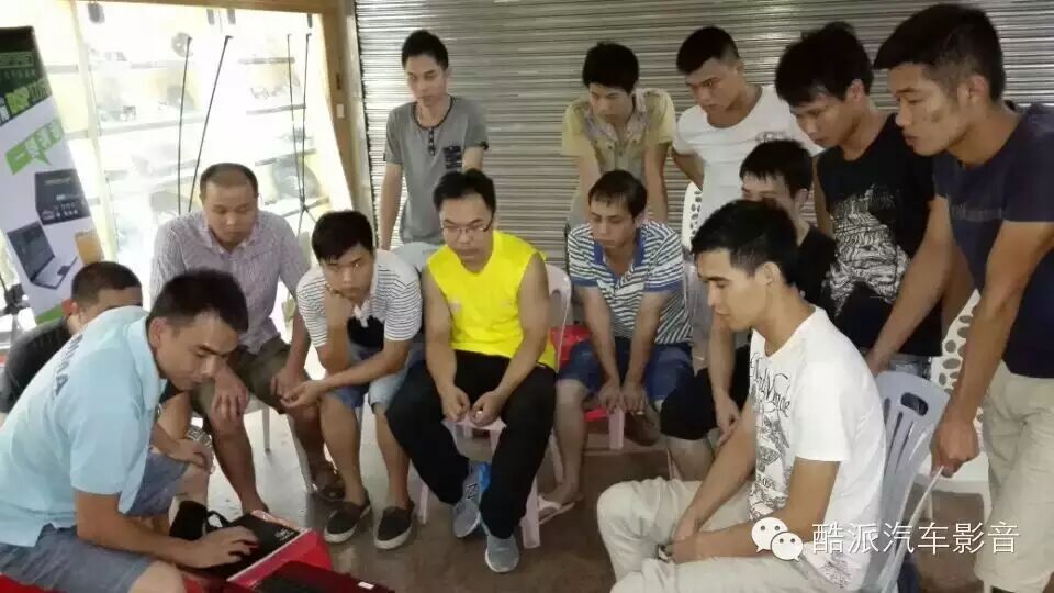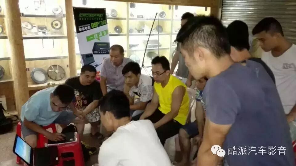 与店家深入的进行技术交流,并实地现场装车实操调音讲解示范!