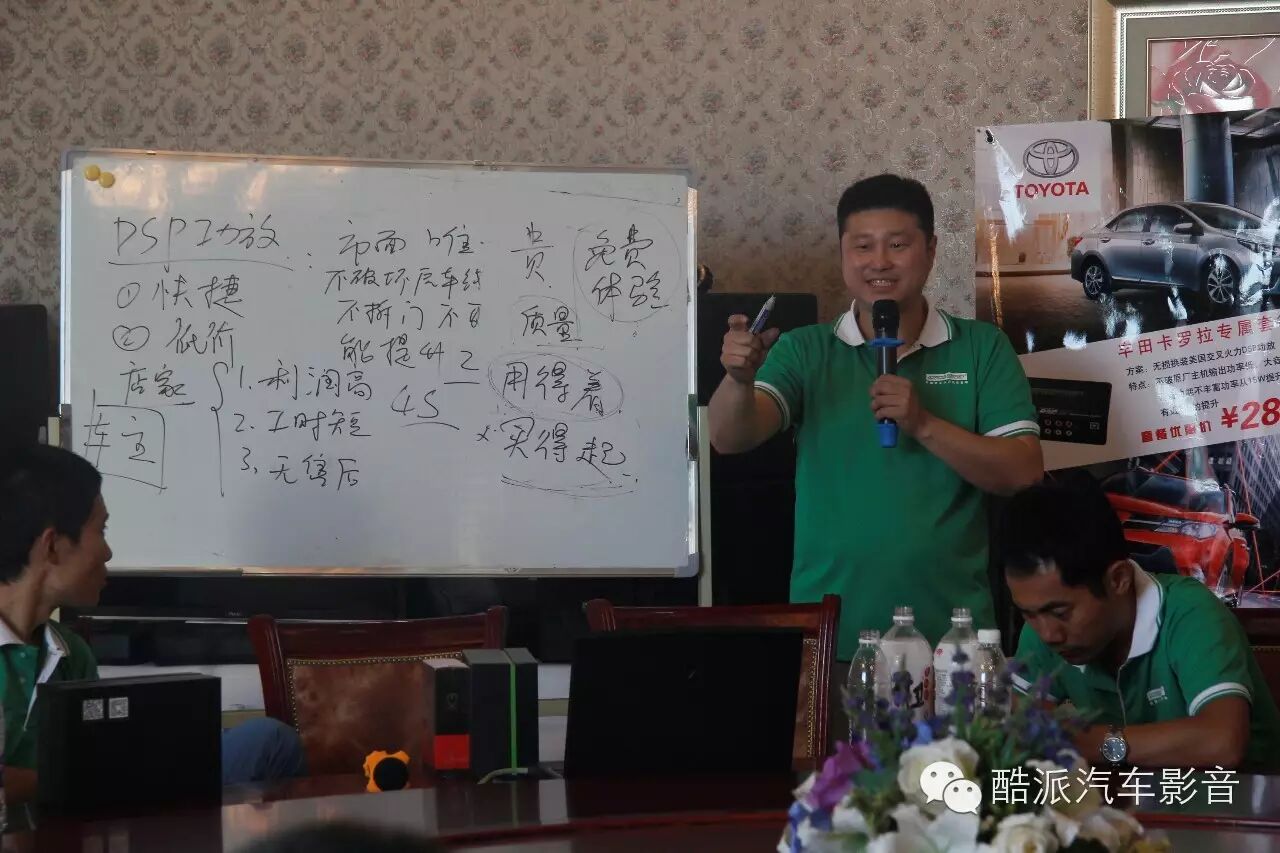 交流会的另一个重头戏是北京千度的陈霖先生,以他丰富的车载DSP功放产品销售解决方案的经验,为大家分享了千度如何为4S店做专车专用DSP功放及相关升级的营销策划、推广、销售的丰富经验!