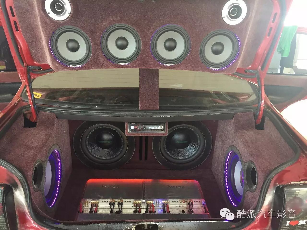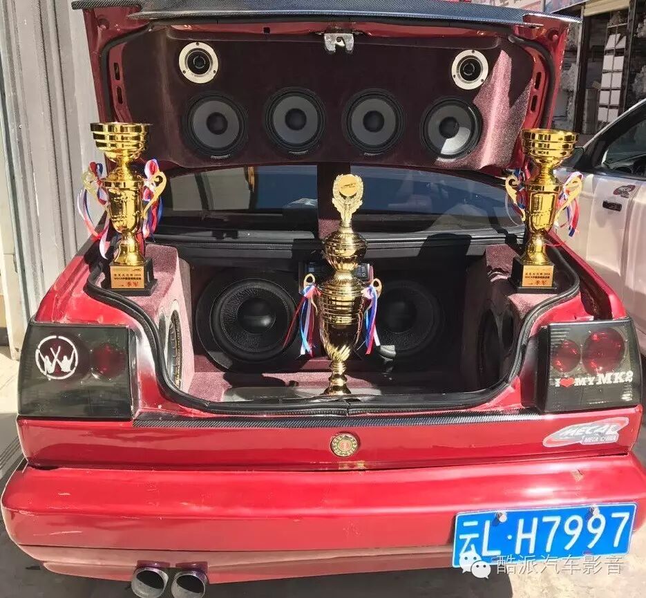 本车由大理博盛技术团队精心打造,技师用两对交叉火力CF-M65喇叭和一对号角高音作为外声场的中、高音单元;用两只交叉火力CF-A12W十二寸双音圈低音和两只酷声十寸低音作为低音单元,造型简朴大方,包绒工艺素净雅致。外声场高音穿透力强,中音饱满,低音澎湃有力,震撼力极强,让你无需花钱去夜场就能感受夜场的音响效果。