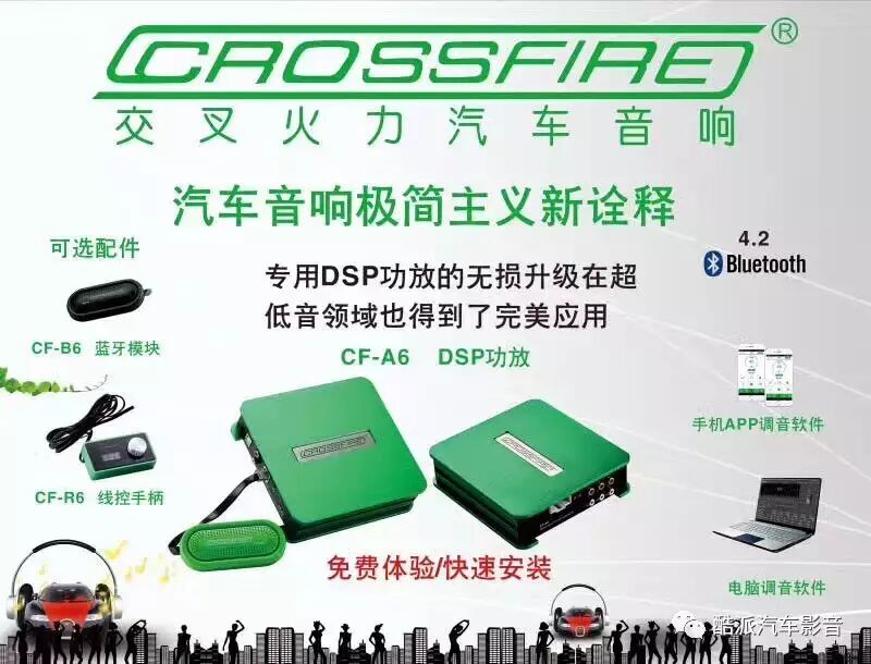 交叉火力利用成熟的汽车音响DSP技术以及数字功放技术,将原本昂贵的独立DSP系统与数字功放结合起来,既小型化,又多功能化 ,最关键是其解决了以往专车专用汽车音响产品效果不能令人满意的问题,数字功放既可以小型化,又可以很好地解决了传统功放要大功率就得大体积的瓶颈。 一个成人手掌大小的DSP功放,可以提供四 个声道均可保证足足60瓦的额定功率, 而安装位置又灵活。