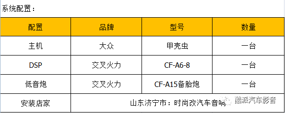 【原车音响系统分析】由于设计风格的迥异,大众甲壳虫在原车的音响系统方面却并没有下足功夫,原车虽配备有6个声场喇叭的常规配备,但是整体音色层次感不够丰富,且异常沉闷,简直让车主无法忍受,为了提升音响的品质这车主也是做了很多功课,在网上经过多方对比之后来到了山东济宁时尚改汽车音响进行了全面的升级工作。