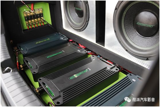 装在尾厢的五台交叉火力功放