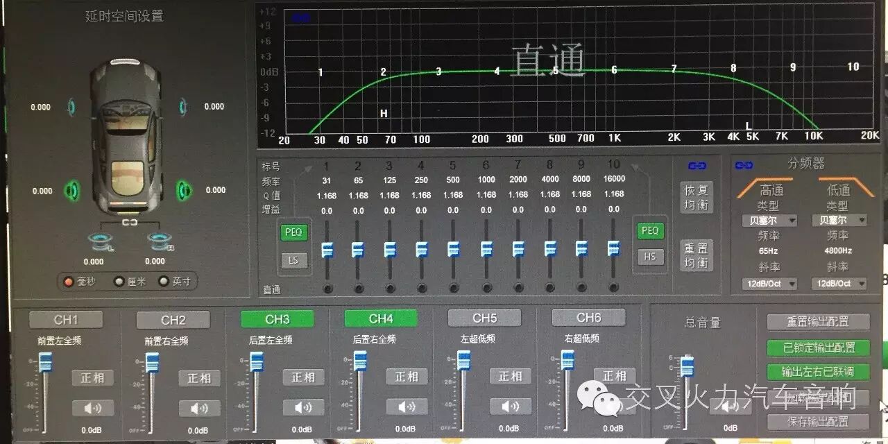 本车用交叉火力DSP超薄炮做前声场主动两分频,高音清晰,延伸感强;中音厚实通透;低音饱满有力度;超低音强劲有弹性。整个声音层次感强。通过电脑对系统的延时调节,声场集中,定位准确。
