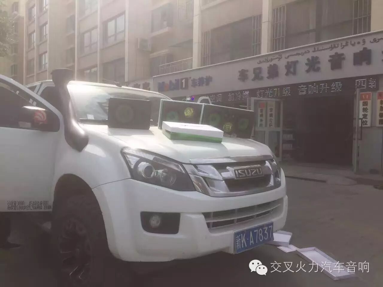 五十铃车主爱上旅途的好音响,到新疆车兄弟安装交叉火力音响,让旅途不再寂寞。