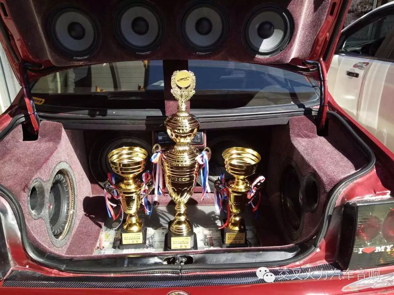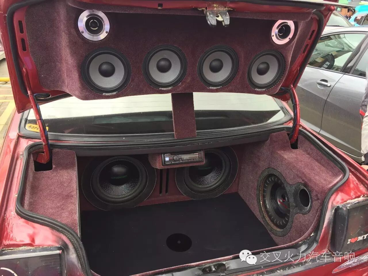 本车由大理博盛技术团队精心打造,技师用两对交叉火力CF-M65喇叭和一对号角高音作为外声场的中、高音单元;用两只交叉火力CF-A12W十二寸双音圈低音和两只酷声十寸低音作为低音单元,造型简朴大方,包绒工艺素净雅致。外声场高音穿透力强,中音饱满,低音澎湃有力,震撼力极强,让你无需花钱去夜场就能感受夜场的音响震撼效果。