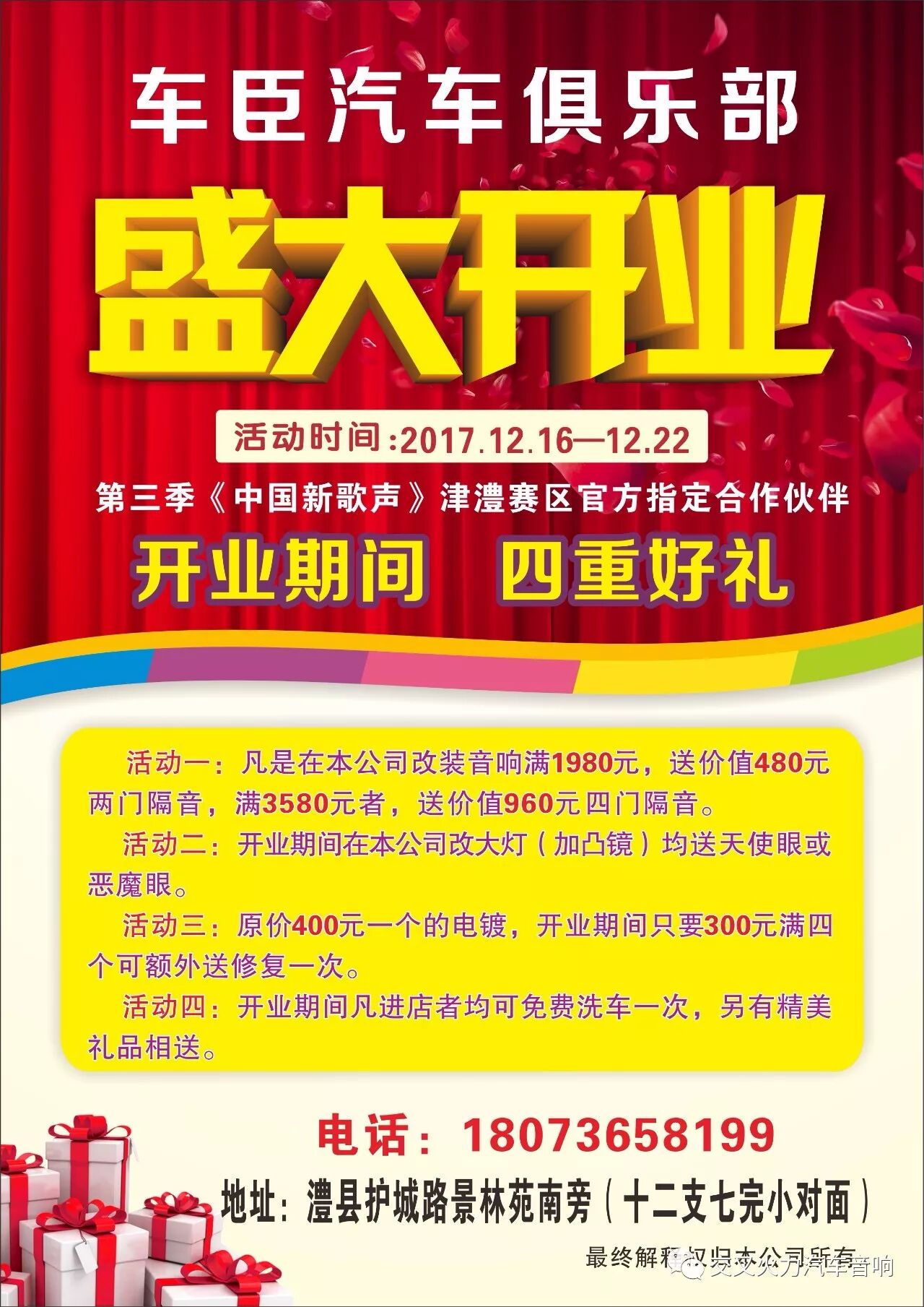 随着音响改装行业不断的发展壮大,以及音响改装理念不断深入人心,为了满足湖南灃县广大车友对汽车音响热爱的需求,湖南灃县车臣汽车俱乐于2017年12月16日盛大开业。