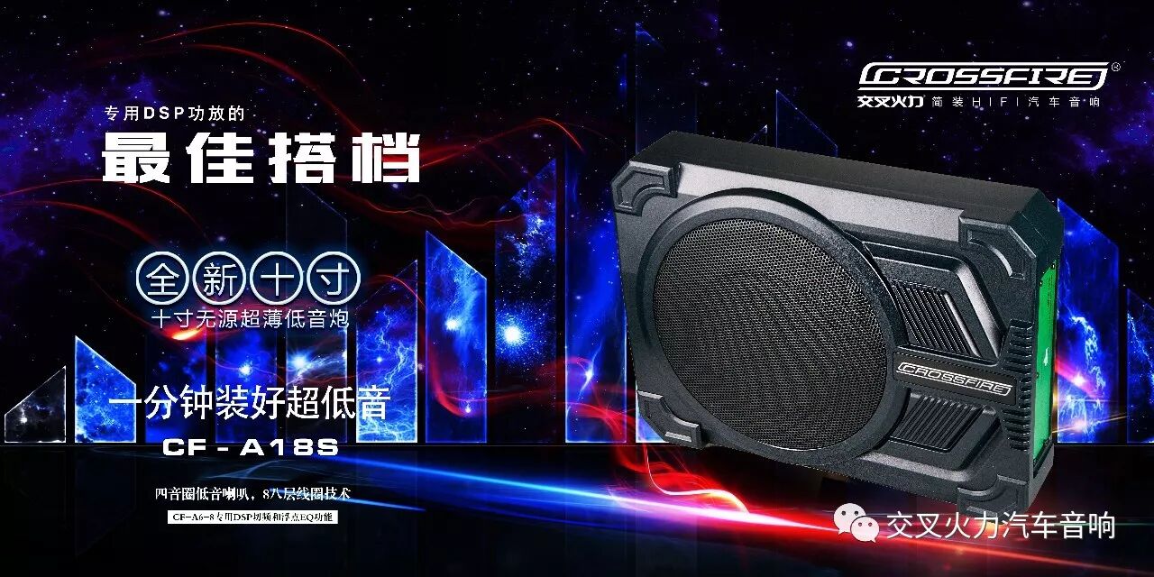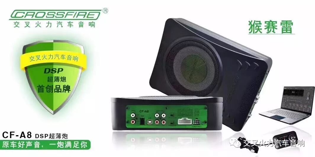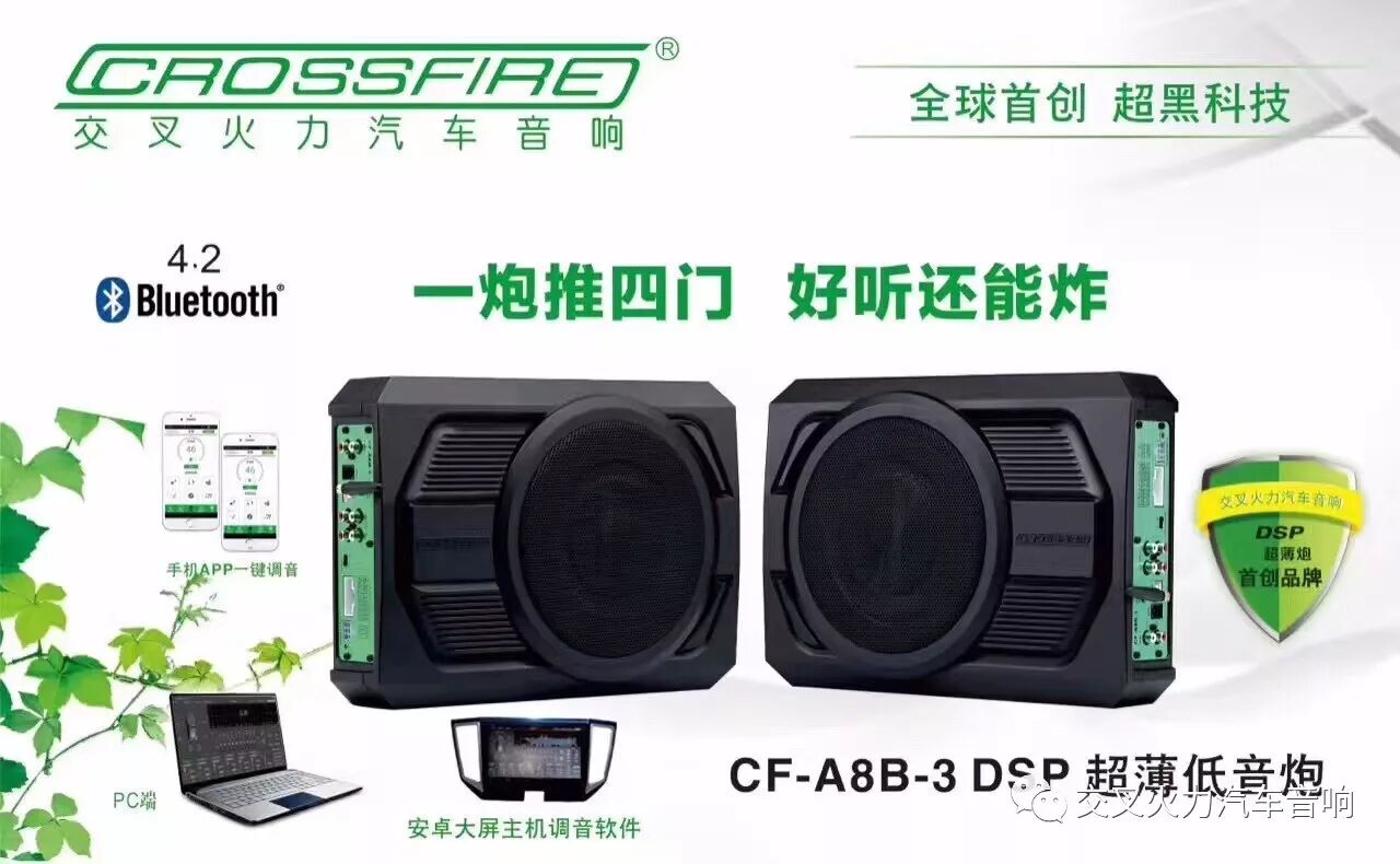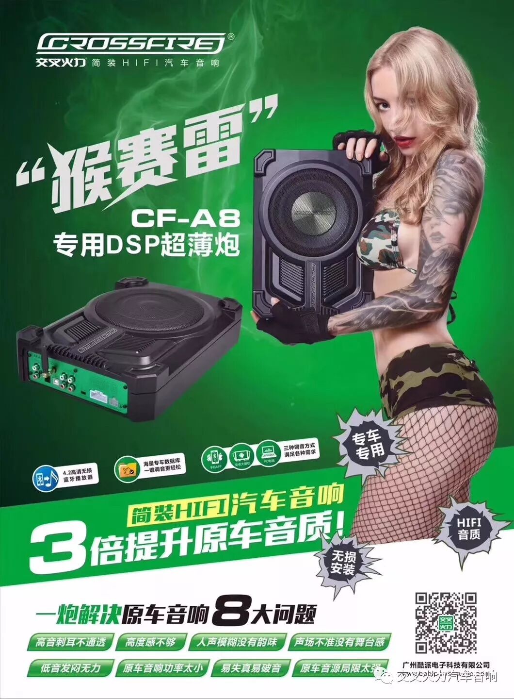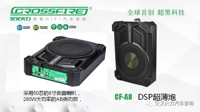 在如此大市场环境下,交叉火力率先做出突破,大胆而创新的将DSP功放内置到超薄低音炮内,推出全新主打产品CF-A8超薄低音炮,实现将超薄低音炮与DSP处理器的有机融合。